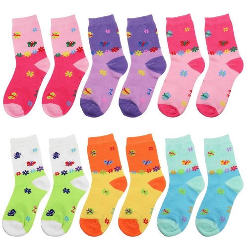 12-Pack Butterfly & Mushroom Girl Crew Socks
