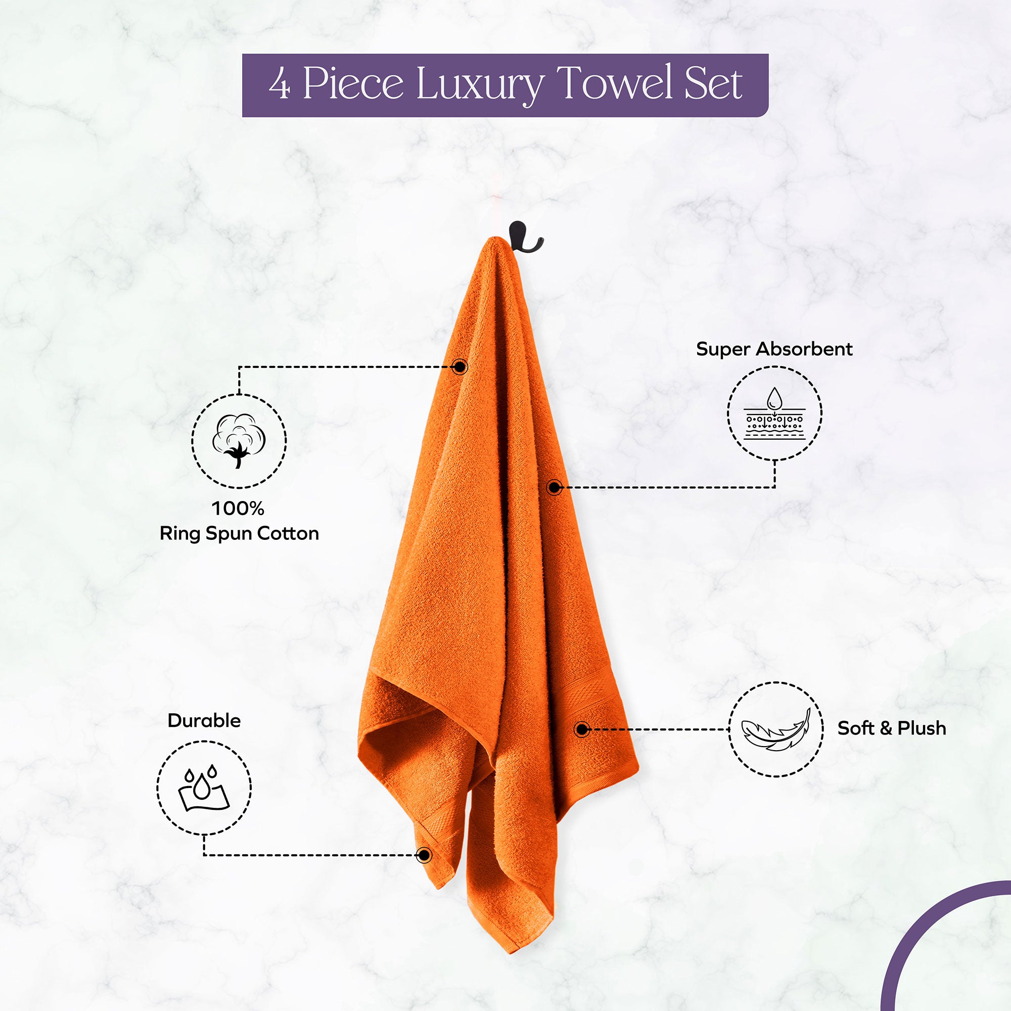 - 100% Ring Spun cotton for softness, fluffy, absorbency & durability