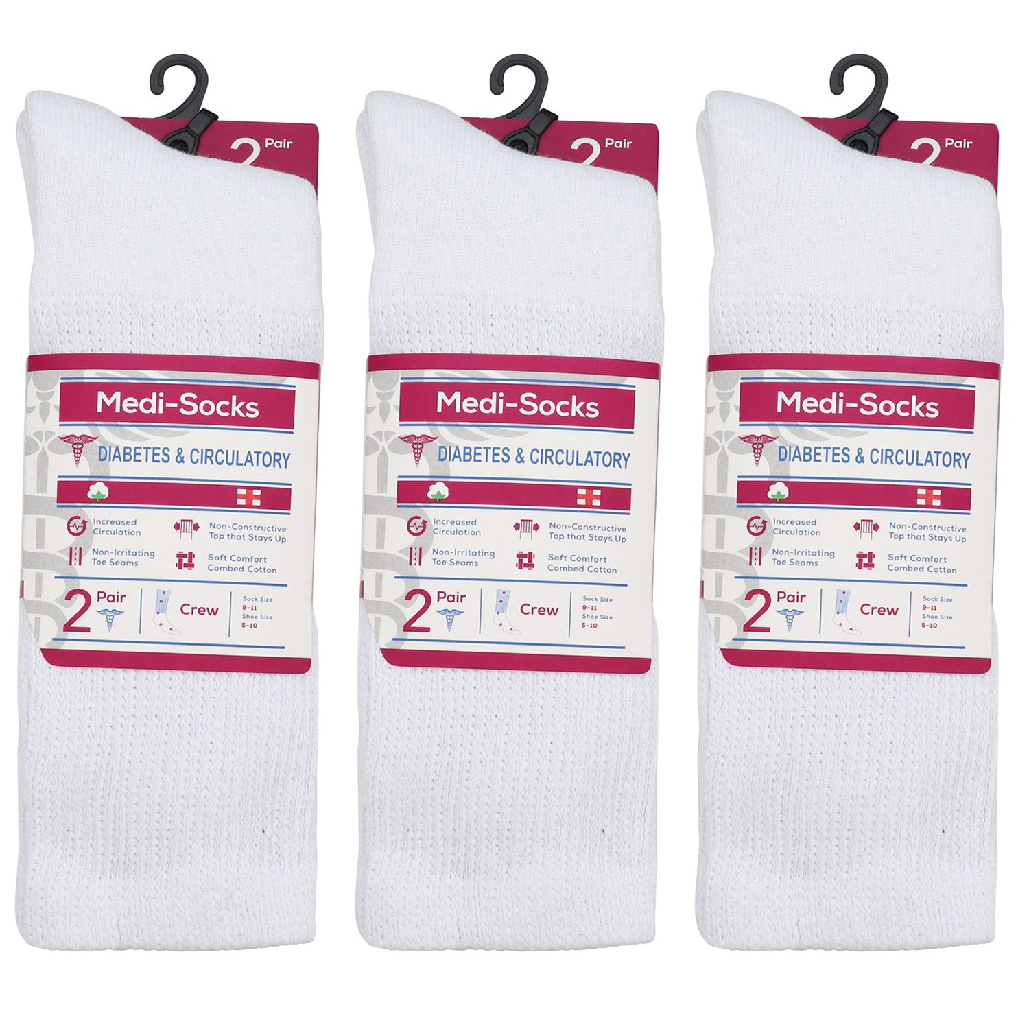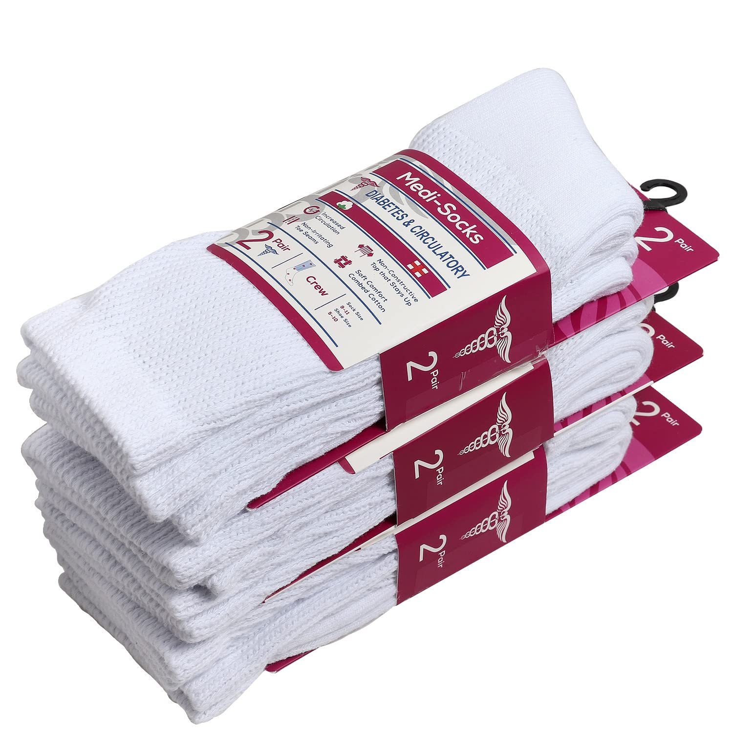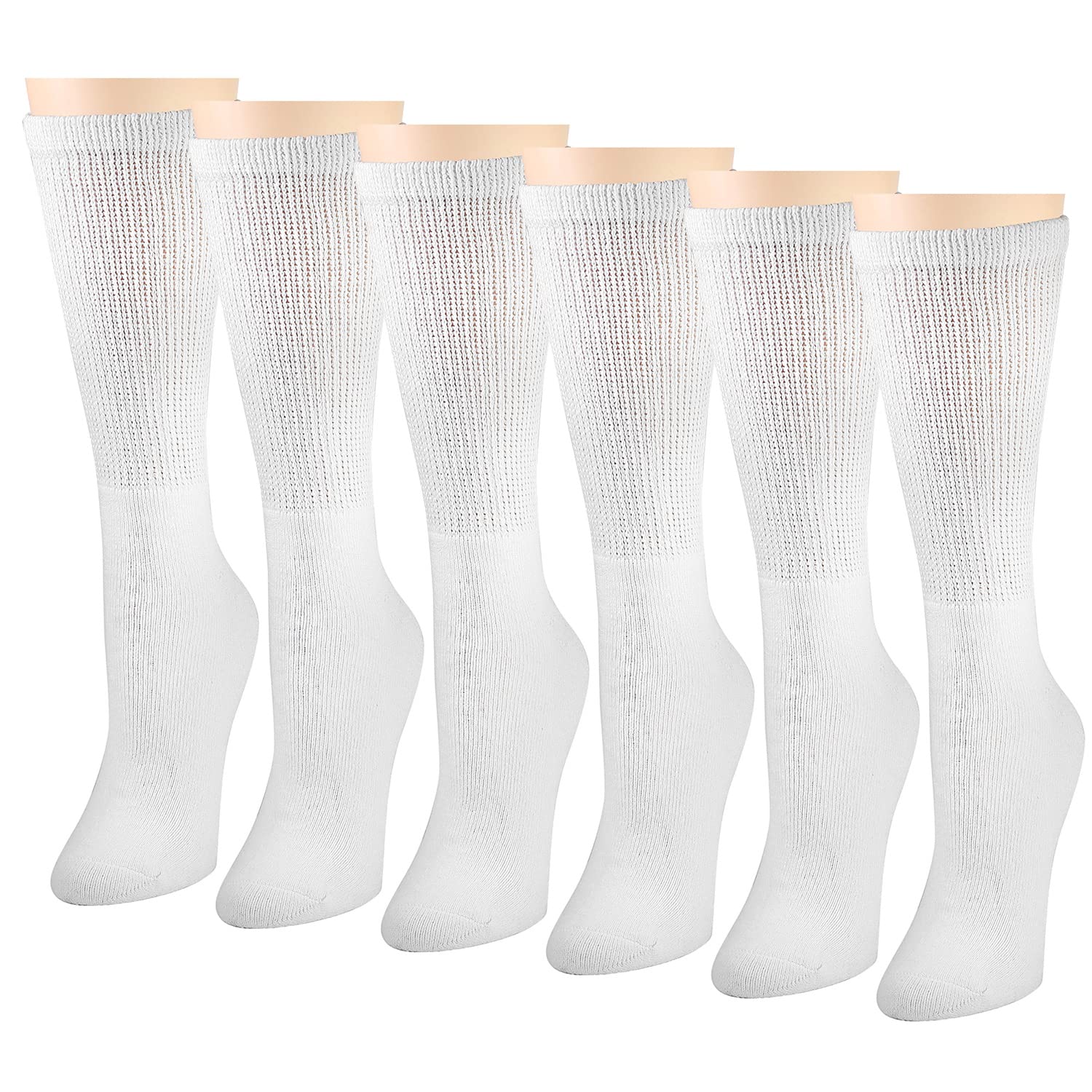 Falari Women Diabetic Socks Diabetes Edema and Circulatory Loose Fitting Cotton Crew Socks - 6 Pairs White